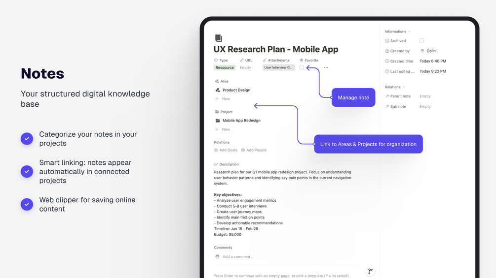 Resource Organization Save web resources, organize meeting notes, and maintain a searchable knowledge base for your business.